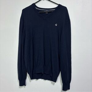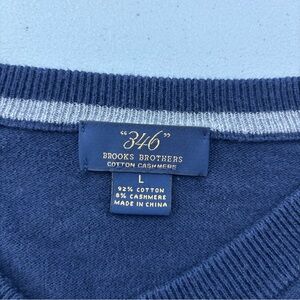 Brooks Brothers 346 Cotton Cashmere V Neck Sweater Embroidered Men's Large Navy