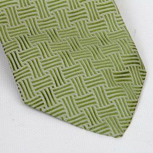 Brooks Brothers 346 Green Checkered Woven Stripe Silk Mens Necktie Tie Ties USA