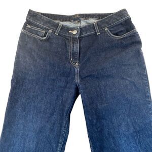 Brooks Brothers 346 Women's Size 10 Blue Denim Straight Stretch Jeans Dark Wash. Good pre-owned condition with normal wear, see photos for details. Measurements in photos and are approximate. Cleaned per Ebay standards.