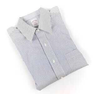 Brooks Brothers 346 Long Sleeve Button Down Dress Shirt Blue Striped Blue 16.5