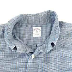 Brooks Brothers 346 Men’s Size Large Long Sleeve Button Down Shirt Blue Plaid Cotton. One chest pocket. Soft 100% cotton. Machine washable.