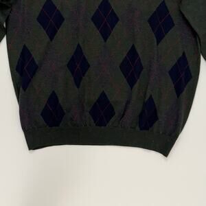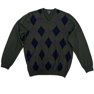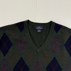 Brooks Brothers 346 Merino Wool V-Neck Pullover Sweater Dark Green Argyle | XL