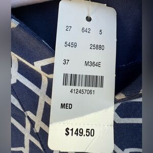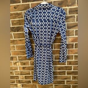 Brooks Brothers 346 Navy & White Belted Geometric Pattern Women's Dress Sz M