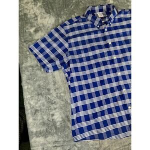 Featuring a classic blue and white plaid pattern, this shirt is perfect for both casual and semi-formal occasions.