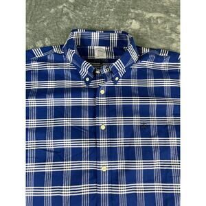 Brooks Brothers 346 Plaid Button Down Shirt Blue White XXL Regular Excellent