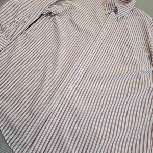 Brooks Brothers 346 Shirt Men's 18 34/35 Red White Stripe Long Sleeve Luxury EUC