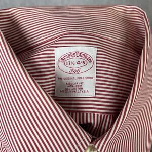 Brooks Brothers 346 Shirt Men's Size 17.5-4/5 Red White Striped L/S Button Down
