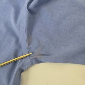 There is barely noticeable discoloration underarm right side. Please see the last photo. Other than that in excellent condition.