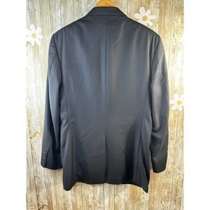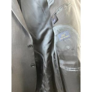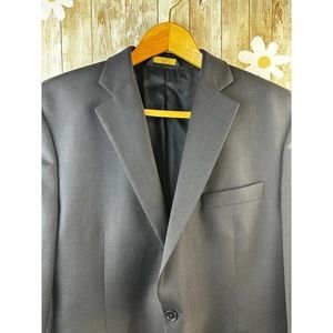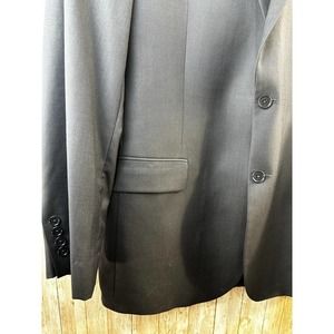 Other Features: Fully lined men's blazer with pockets, collared, vented hem on the back 2 button front closure, long sleeves.