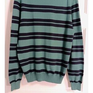 Brooks Brothers 346 Sweater Men M Green Striped Cotton Cashmere V-neck Rugby Dad