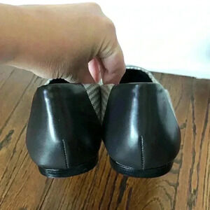 Details: Beautiful pair of flats from Brooks Brothers. This gray houndstooth design is coupled with a brown leather making for a polished looking shoe. Original MSRP $280!!