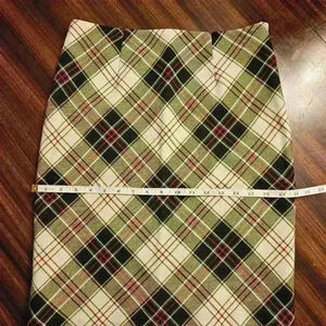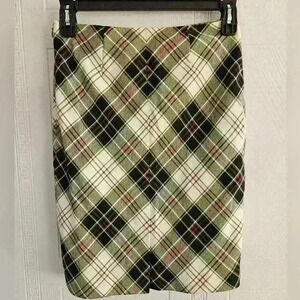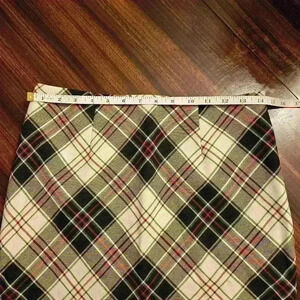Brooks Brothers 346 Mini Skirt in size 2 in the classic black, white, and red tartan plaid pattern. Has a side zip closure, 6.5 in slit in the back and is made of 40% wool, 40% polyester and 20% viscose. Fully lined. Dry clean. Pristine condition, worn once.