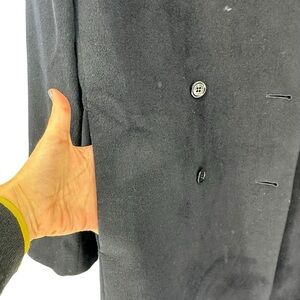 Gently used condition with no stains holes or heavy wear. Fully lined. Very dark navy color. Wool officer coat