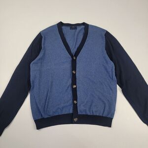 Brooks Brothers 346 Cardigan Cashmere Blend Sweater Men L Blue Two Tone Buttons