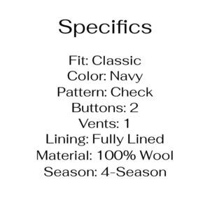 Brooks Brothers 40L Navy Check Two Button Wool Sport Coat Blazer Jacket …