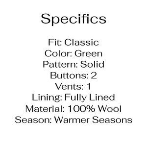 Brooks Brothers 40S 32x27 Green Solid 2-Button Suit R234