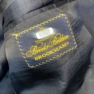 This is a pre owned Brooks Brothers 44R Brooksease Navy Blue 2 Button Birdseye Pattern Blazer. This item is in good condition with minimal or no signs of use. Lighting affects darker colors in pictures. True color is more like the hanging pictures.