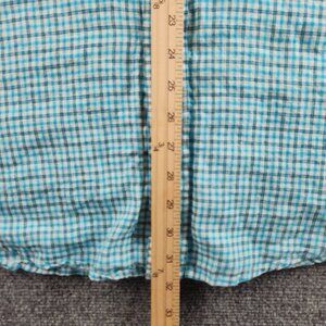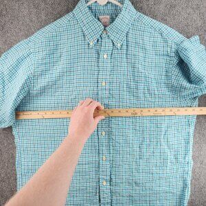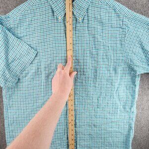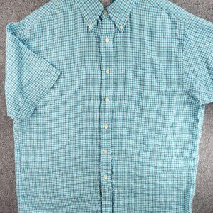 Brooks Brothers All Linen Light Blue Check Short Sleeve Button Up Shirt Large