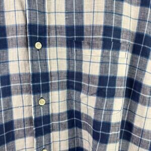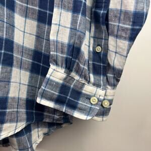 Brooks Brothers Baird McNutt Blue White Plaid Linen Button Down Shirt Size XL