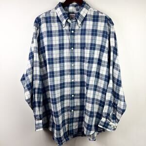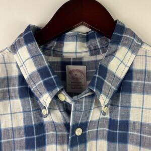 Brooks Brothers Madison 100% Linen Plaid Button Down Shirt Size XL Blue White