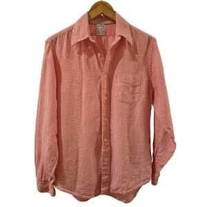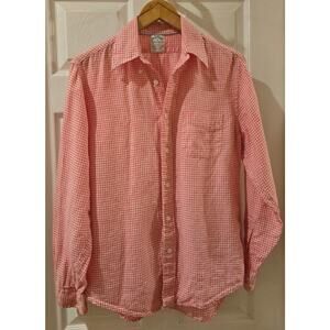 Brooks Brothers Baird McNutt Linen Pink White Gingham Button Down Shirt Medium