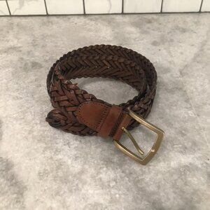 Brooks Brothers Belt Mens 34 Brown Braided Leather Brass Buckle Woven Casual
