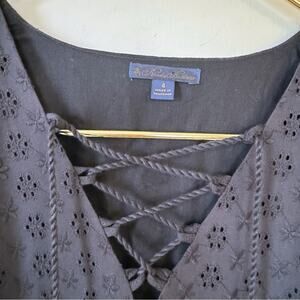 Brooks Brothers Black Daisy Eyelet Cotton Tiered Tassel Tie Neck Midi Dress 4