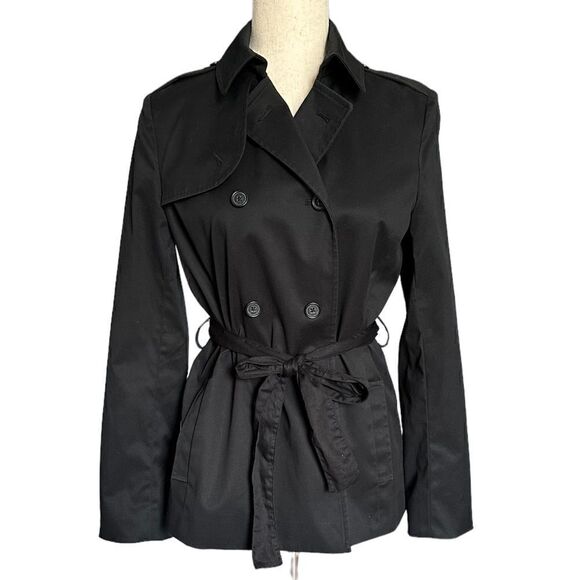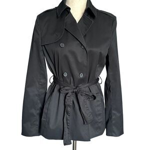 Brooks Brothers Black Double Breasted Belted Short Trench Coat | Size 2