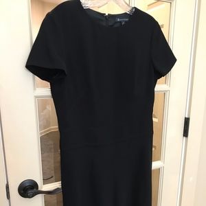 Super cute dress. Gently worn. Fitted in bodice, then softly flows at the bottom to give room for those with a booty. 100% poly crepe and fully lined.