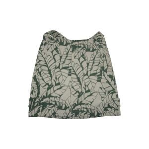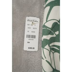 Brooks Brothers Black Fleece skirt in size BB4 (equivalent to a 30). Made in Romania from 100% high-quality cotton. Features a bold green leaf/banana leaf print on a cream background with signature Black Fleece button details. Fully lined interior with clean structure.