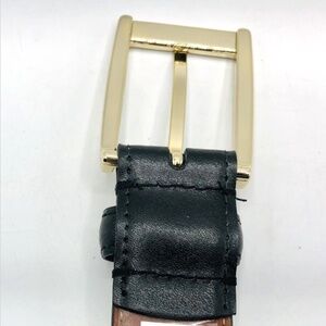 A timeless accessory from Brooks Brothers, this men’s belt is crafted from genuine black leather and finished with a gold-tone single latch buckle for a refined look. Classic and versatile, it’s designed to complement dress pants, slacks, or business casual outfits, offering both durability and style. The sleek black leather pairs effortlessly with a wide range of wardrobes, making it a staple piece for any man’s collection.