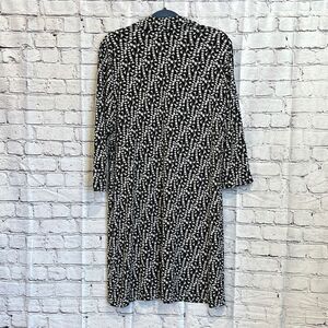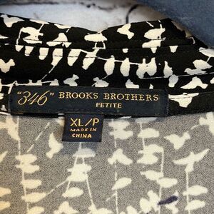 This dress is made by Brooks Brothers It’s a black and white faux wrap dress with 3/4 length sleeves. Size XL petite and in very nice pre owned condition. Smoke and pet free home.