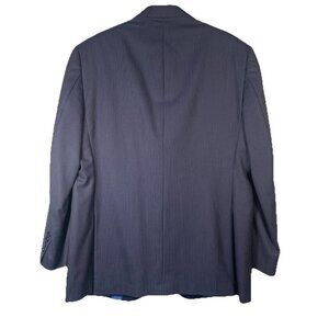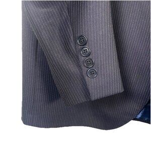Elevate your formal style with this sleek Brooks Brothers blazer in a classic navy pinstripe. The timeless design features a regular 43 size and jacket/coat length, making it a perfect fit for any business occasion. Crafted from high-quality wool material, this sport coat offers both comfort and durability.