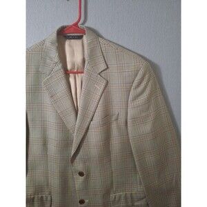 Brooks Brothers Blazzer 40 Tan Silk Wool Glen Plaid Windowpane Jacket Sport Coat