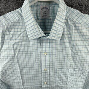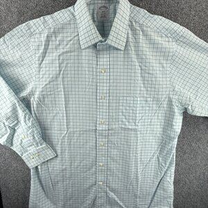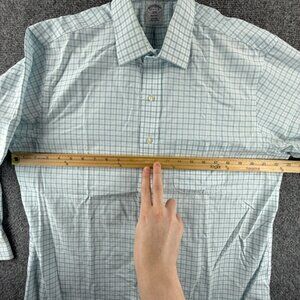 Brooks Brothers Blue Brown Check 16.5 32/33 Regent Cotton Non-Iron Long Sleeve