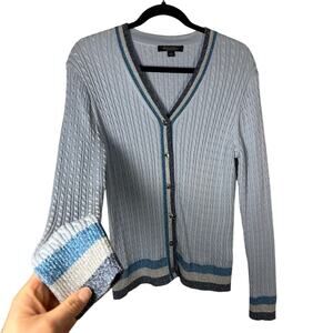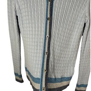 Brooks Brothers Blue Cable Knit Cotton Button Down Cardigan Sweater Size Large