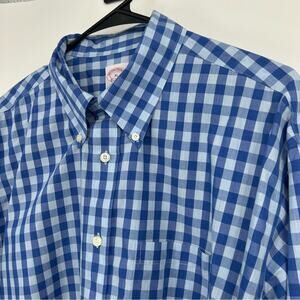 Brooks Brothers Blue Plaid 100% Cotton Madison Casual Button Down Shirt Size XL