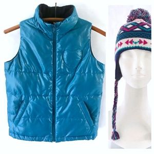 Brooks Brothers Blue Puffer Down Filled Vest & Merrell Pom Hat