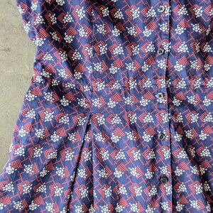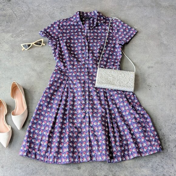 Brooks Brothers Blue Red White Floral Cotton Shirt Dress with Pockets size 8