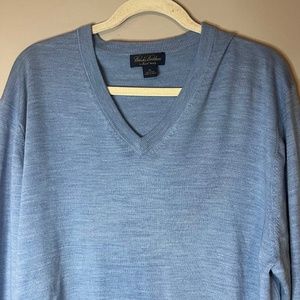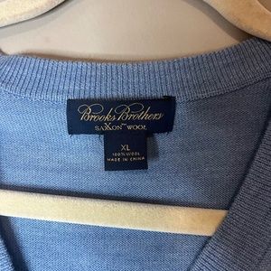 Brooks Brothers Blue Saxxon Wool Sweater V-Neck Pullover