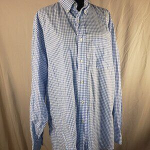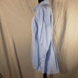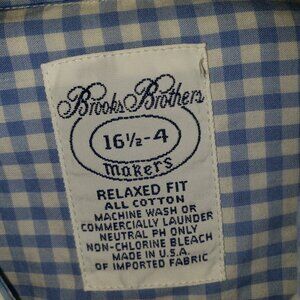 Brooks Brothers Makers blue and white checked button-down dress shirt. Long sleeves. Size 16.5 - 4.
