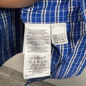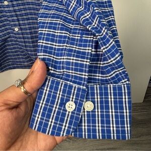 This Brooks Brothers shirt features a classic blue and white plaid design, perfect for casual outings. Made from a comfortable cotton blend, it offers a relaxed fit with a timeless button-down style. Ideal for adding a touch of sophistication to your everyday look.