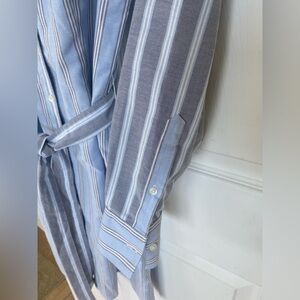 Brooks Brothers Blue and White Striped Dress with Pockets and Belt