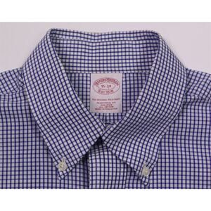 Brooks Brothers Blue/White Checkered Non-Iron Cotton Dress Shirt (38) 15-34