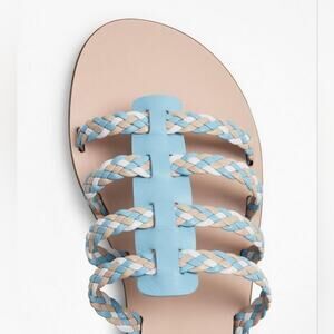 Complete warm-weather looks in beautiful, breezy style with these braided three-color Italian leather slide sandals.