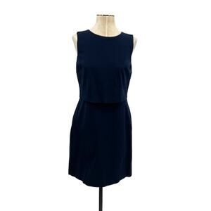 Brooks Brothers Button Back Sheath Dress Sleeveless Popover Navy Blue Size 4