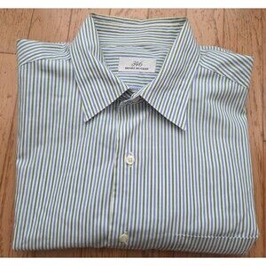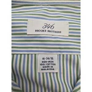 Brooks Brothers Button Down Dress Shirt 16 34/35 Blue Green White Striped