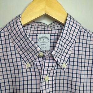 Brooks Brothers Button Down Dress Shirt. Size: Large. Graph Check Light Pink and Navy.