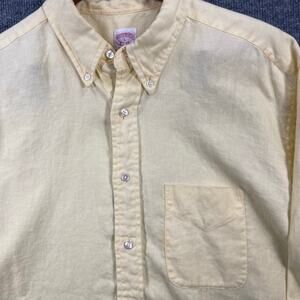 Brooks Brothers Button Down Linen Dress Shirt Men's Large Yellow Formal Church