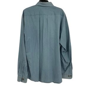 Brooks Brothers Button Down Long Sleeve Denim Shirt Mens Size Large Cotton. Button down collar. Long sleeves with button cuffs. Front logo. Shirttail hem. Chest 50. Length 32. Measurements are approximate. Very good preowned condition.